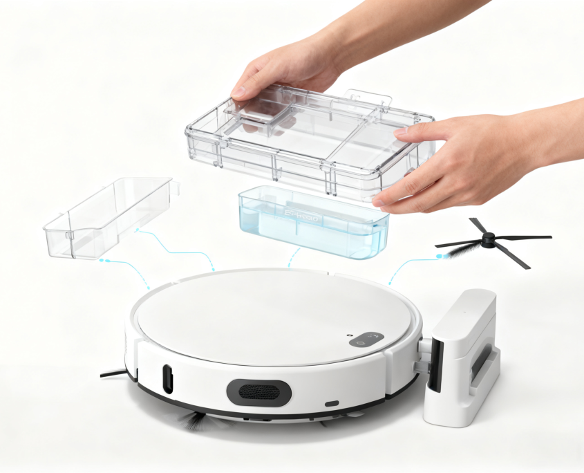 Remote control of the entire cleaning process through a mobile app, enabling features such as map view, mode switching, and scheduled cleaning.