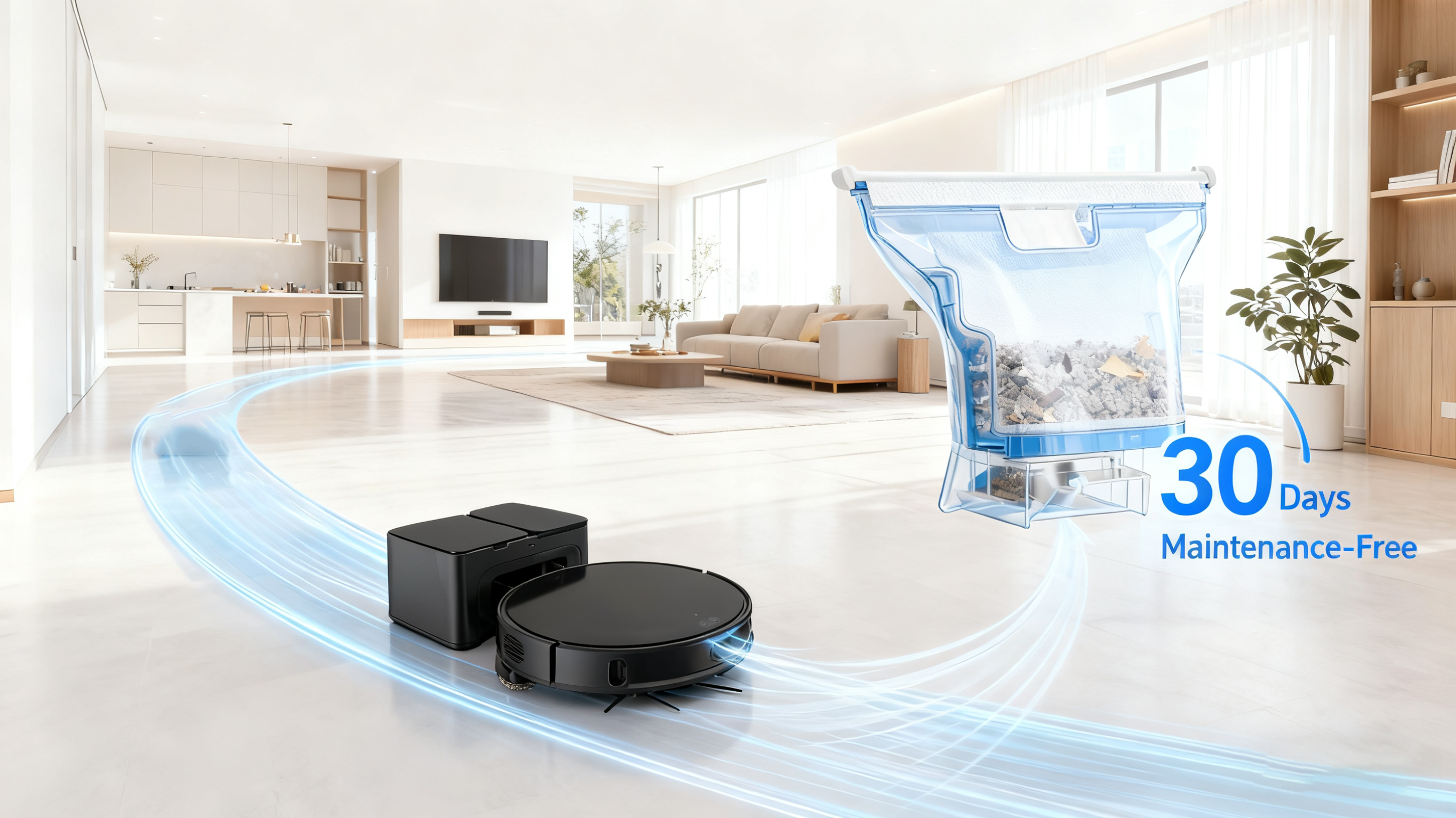 Remote control of the entire cleaning process through a mobile app, enabling features such as map view, mode switching, and scheduled cleaning.