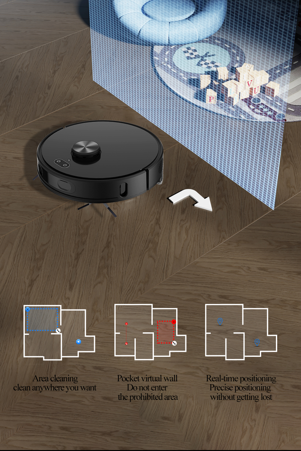 Easily set no-go zones on the APP map to protect sensitive areas like pet food bowls and wire entanglement zones, making cleaning smarter and home safer.