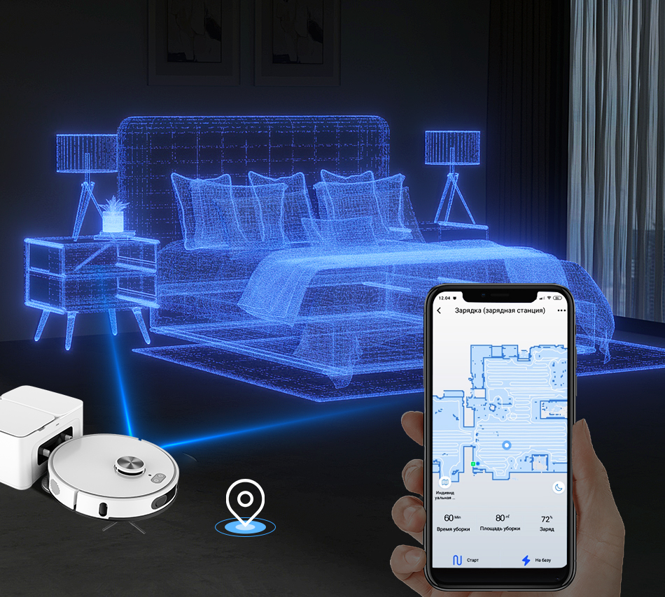 H990’s next-gen LDS LiDAR system scans your home 360°, recognizing furniture and obstacles to create the most efficient cleaning routes.