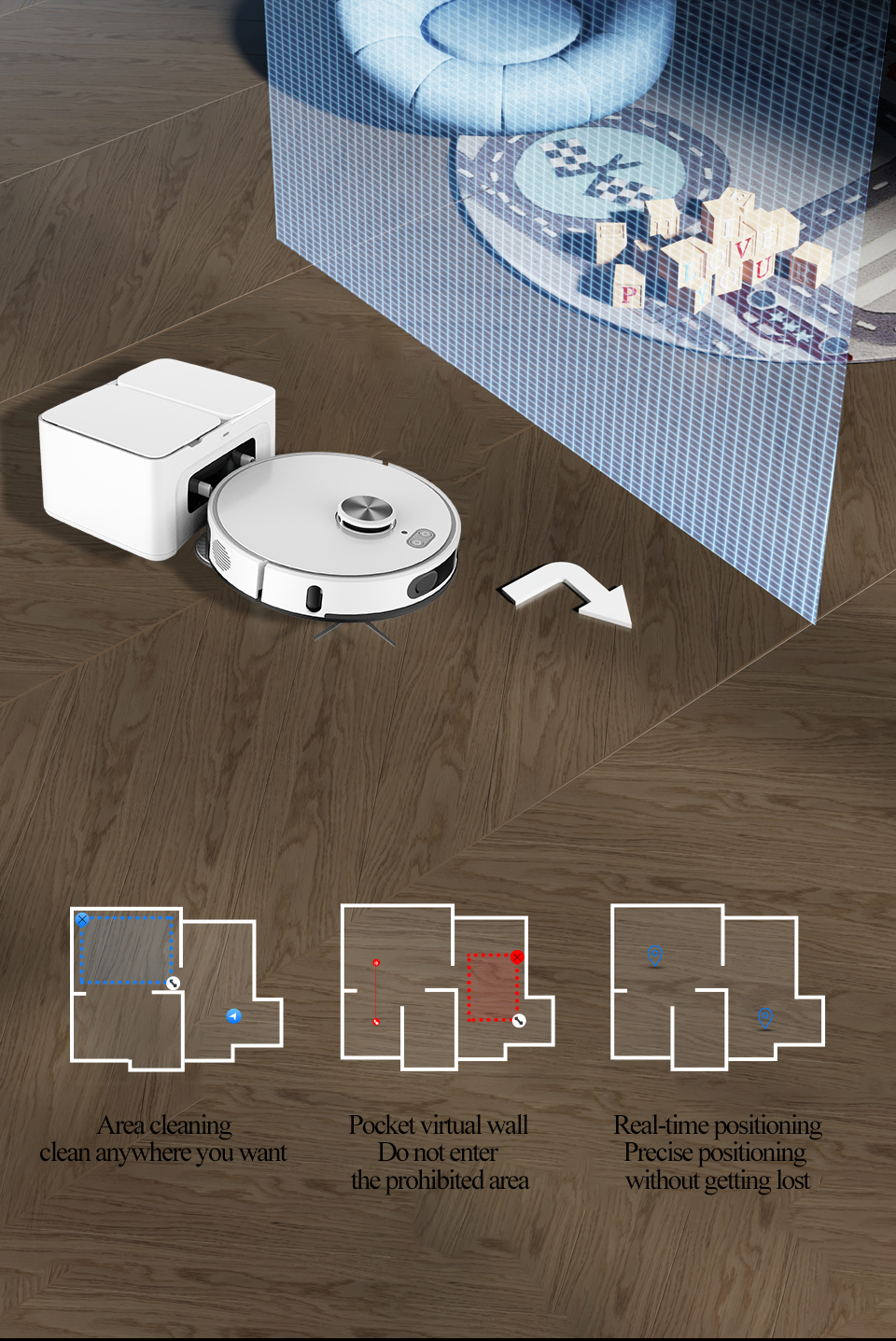 Easily set no-go zones on the APP map to protect sensitive areas like pet food bowls and wire entanglement zones, making cleaning smarter and home safer.