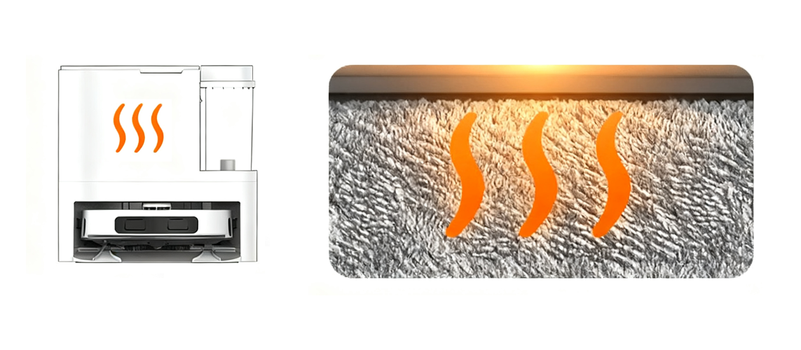 After completing the task, the hot air drying function automatically activates to rapidly evaporate residual moisture on the mopping cloth, effectively preventing mold growth and unpleasant odors caused by dampness, fully protecting your home environment.